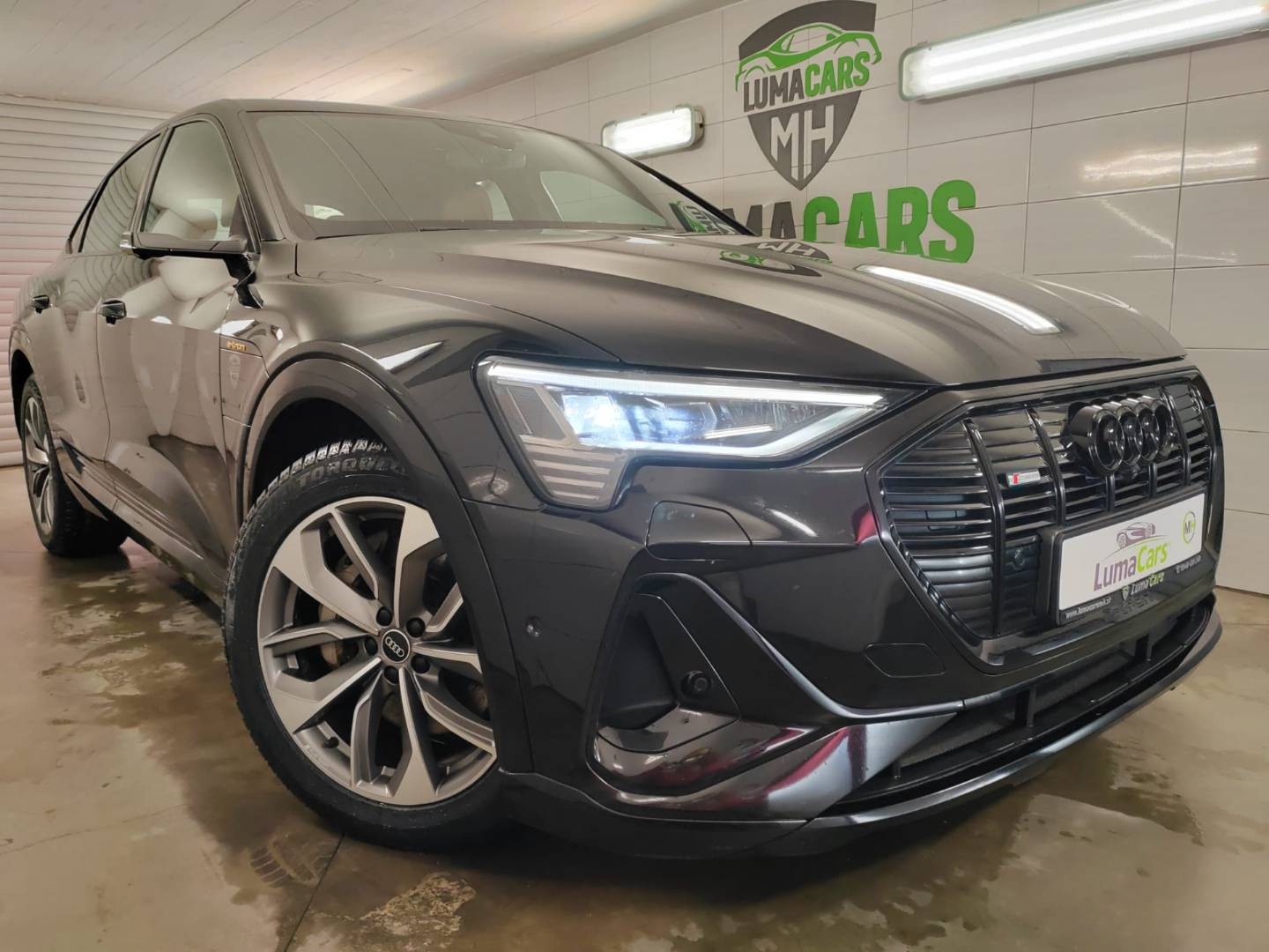 Pozrite si automobil Audi E-tron 50 quattro S line zblízka.